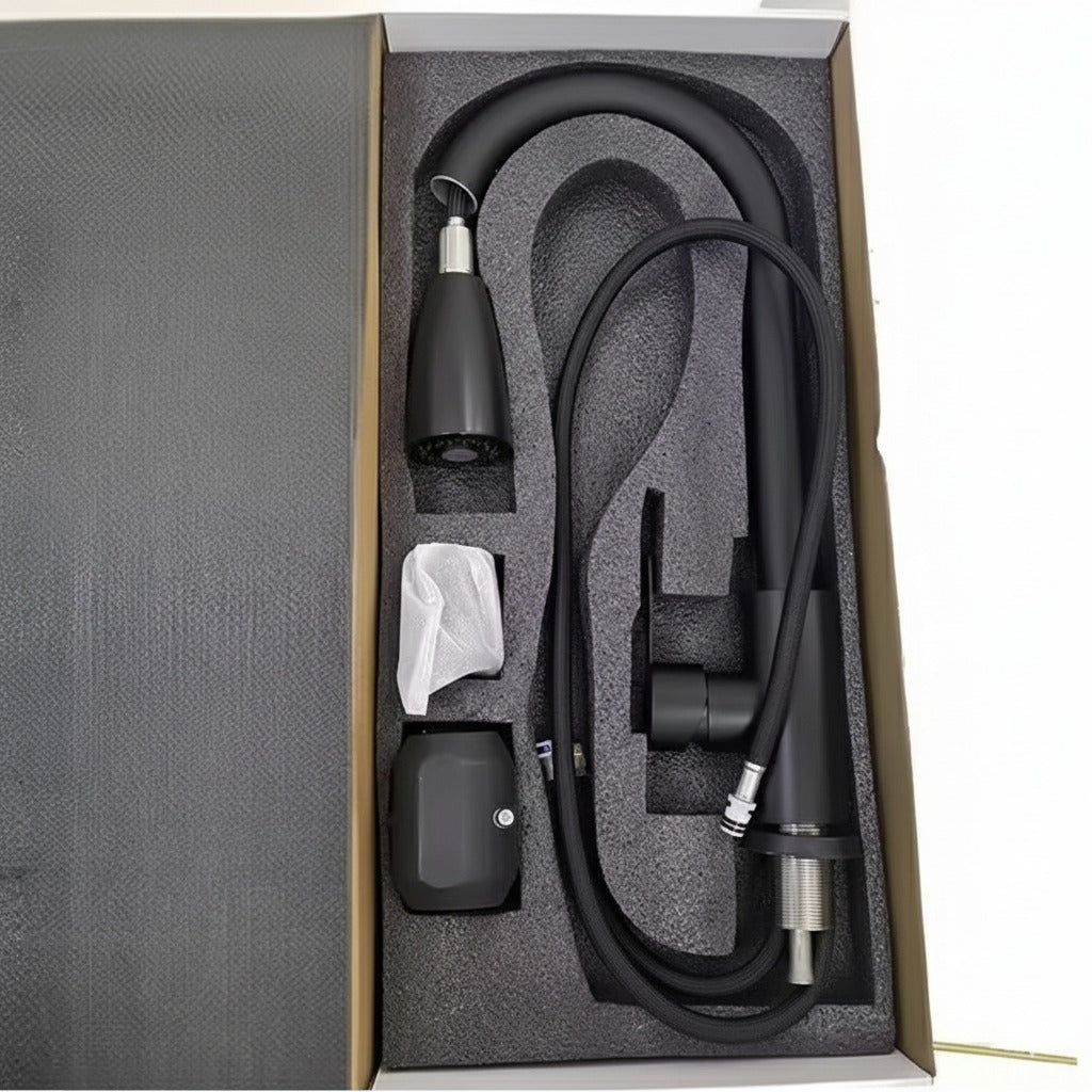 Introducing the sleek and durable black pull-out kitchen faucet by Abid Traders, crafted from premium 304 stainless steel. This faucet features a flexible hose and pull-out spout for easy dishwashing and sink cleaning, along with smooth hot and cold water control. Its elegant matte black finish adds a modern touch to any kitchen. Built for performance and easy installation, it’s a perfect fit for contemporary homes and commercial kitchens alike.