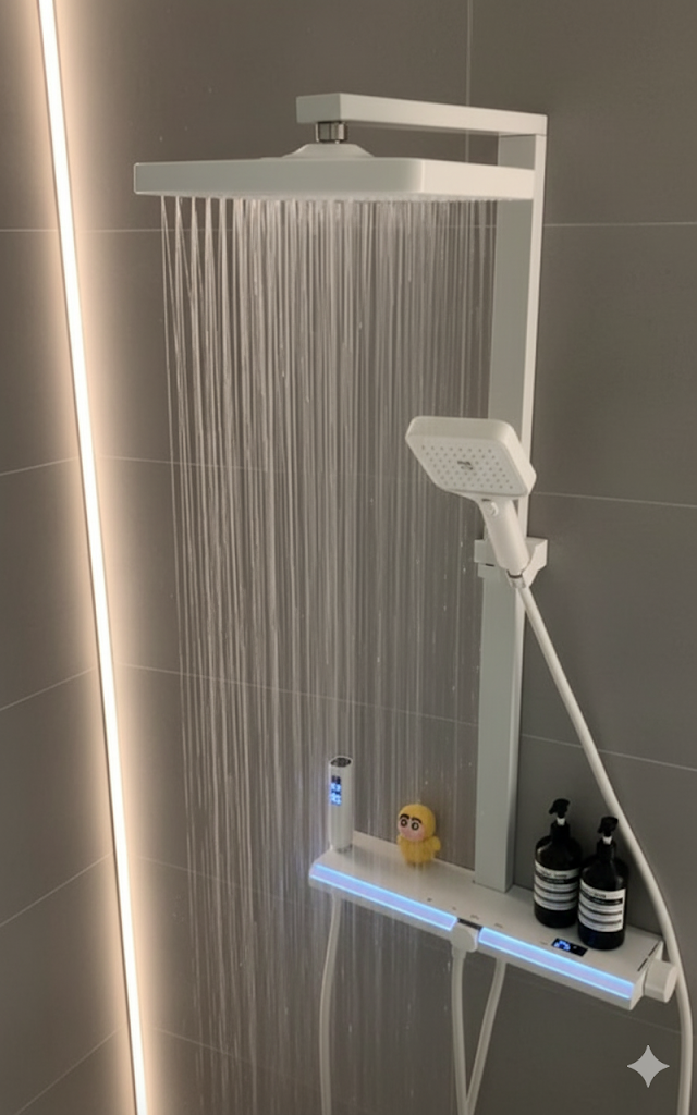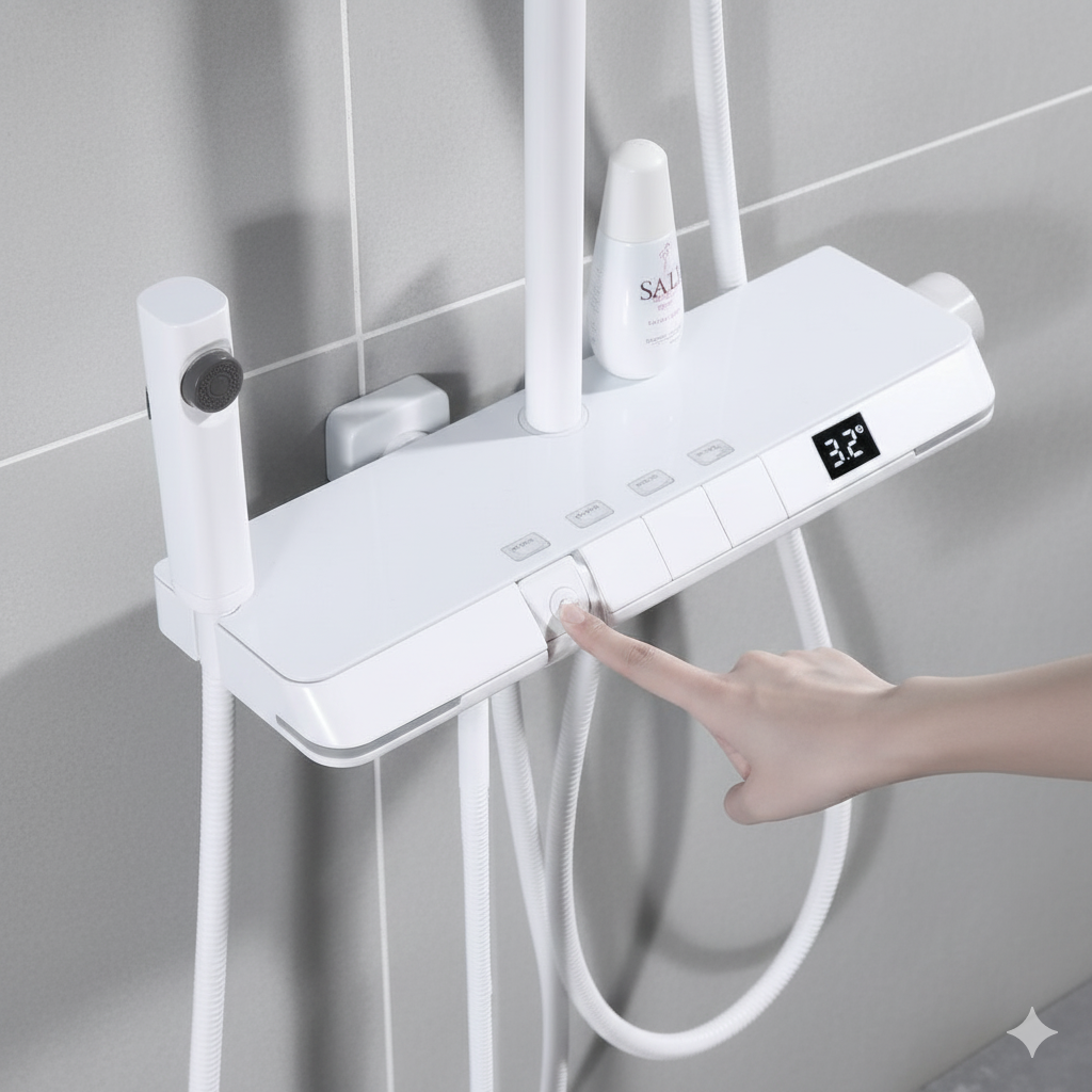 Turn up the intensity in your bathroom with this off-white piano-finish shower set made from premium 304-grade stainless steel. Engineered for power and versatility, it offers four functions in one rust-free imported design. Experience hydropower performance combined with striking durability—this shower set is built to dominate every shower.